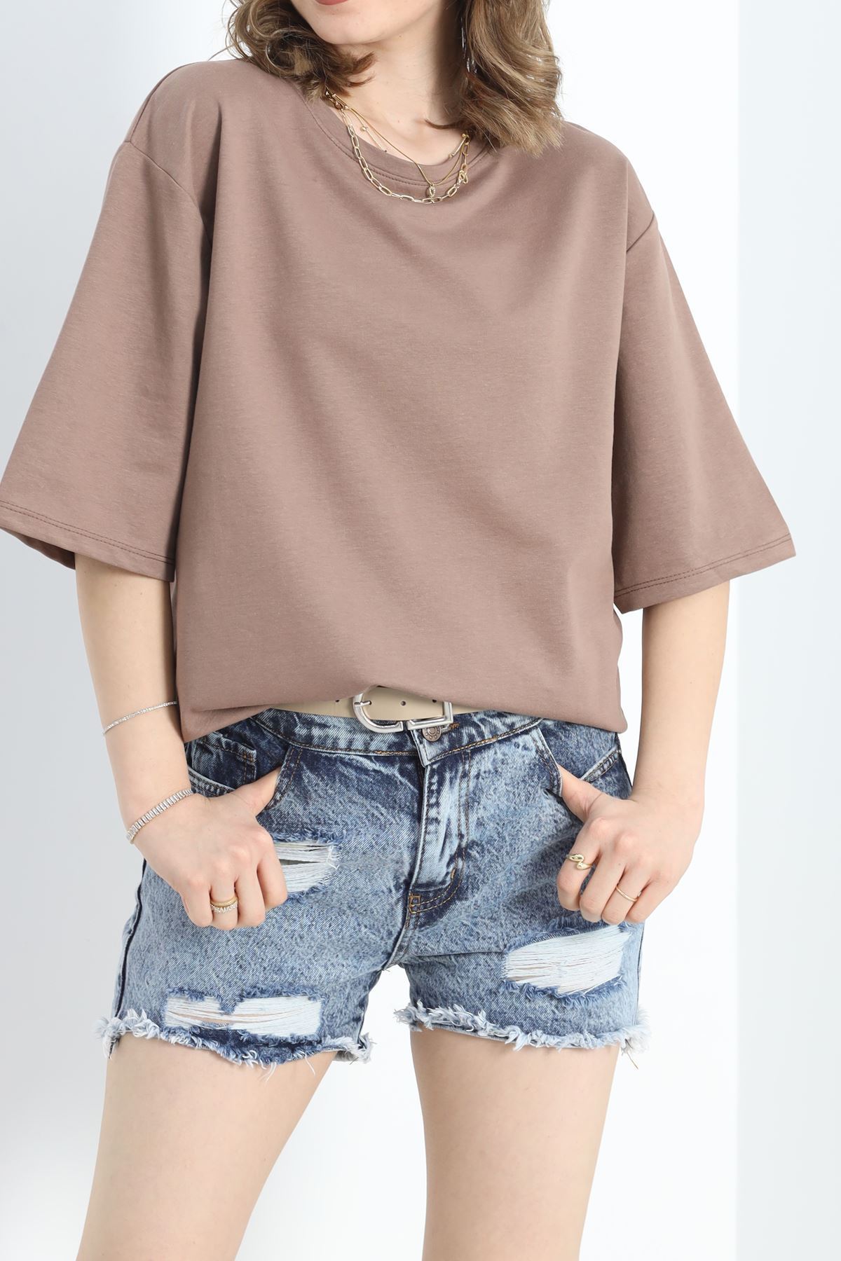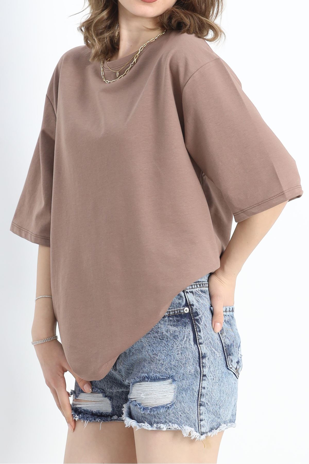 Duble Kol Yırtmaçlı 2 İplik Tişört Gülkurusu - 20701.1878.